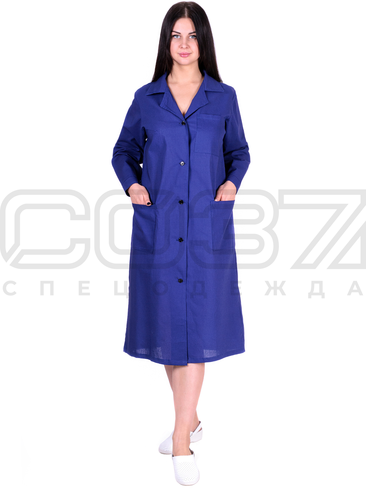 Халат рабочий женский цв.тёмно-синий тк.бязь в Воронеже