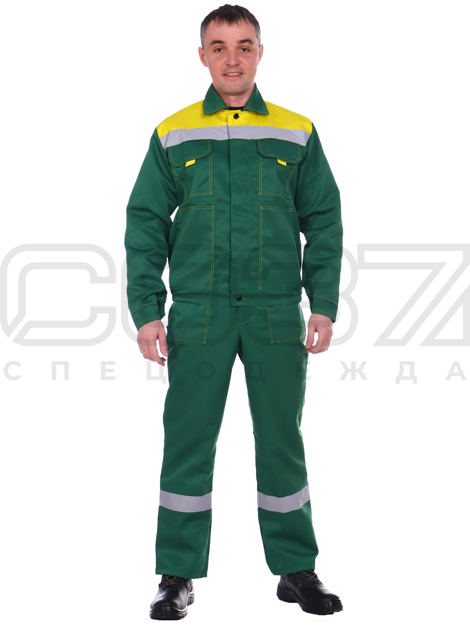 Костюм рабочий "Легион" с СОП цв.зелёный/жёлтый тк.смесовая(куртка+пк) в Воронеже