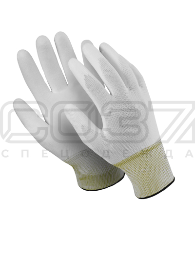 Перчатки антистатические двойной оверлок 13 класс вязки полиуретан на ладони и пальцах.